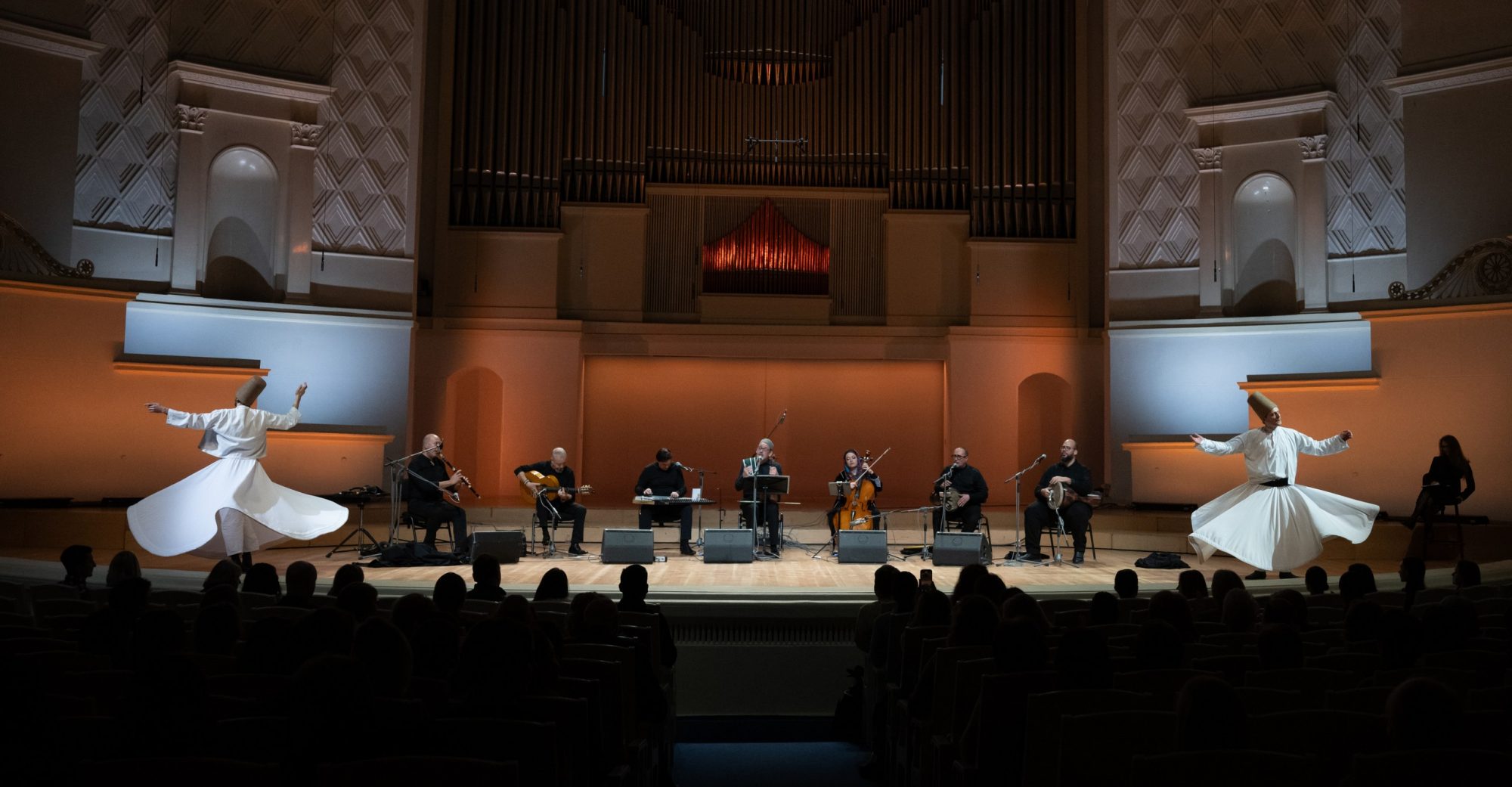 Podemos tocar en formación coral acompañados solo con percusiones. Disponemos de danza derviche (baile sufí giratorio)